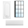 Give your bathroom a modern update with this rounded bath and screen set. With its minimalist design and glossy finish, it’ll give your bathroom a final finishing touch. This bath comes with no tap holes, but is suitable for drilling tap holes, giving you the freedom to style as you wish. Added with an industrial look to your bathroom with our Nova Grid Bath Screen with a Matt Black profile finish to compliment any modern bathroom. This screen has a pivot fixture to allow for an easy rotation when cleaning and airflop. It is also made from 6mm toughened safety glass and metal hinges. End panel not included.