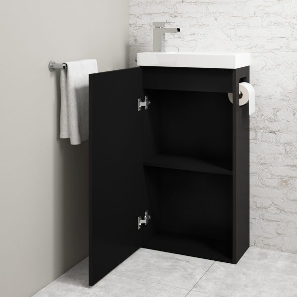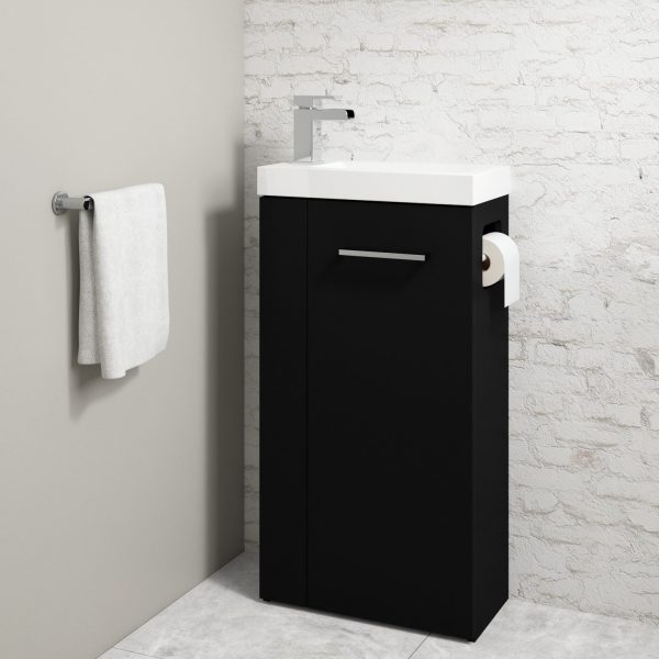 430mm Black Cloakroom Freestanding Vanity Unit with Basin and Chrome Handle – Virgo