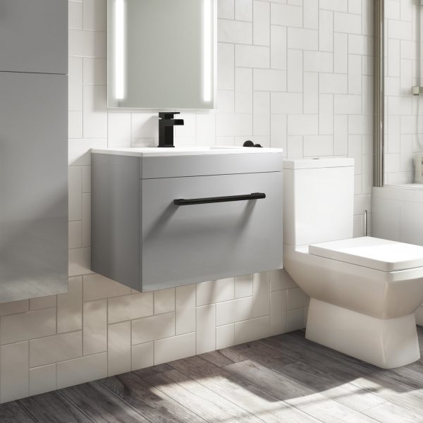 600 mm Grey Wall Hung Vanity Unit with Basin and Black Handle – Ashford