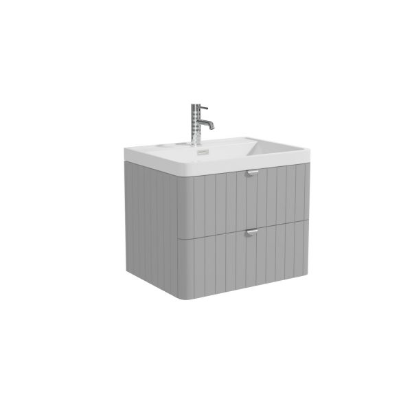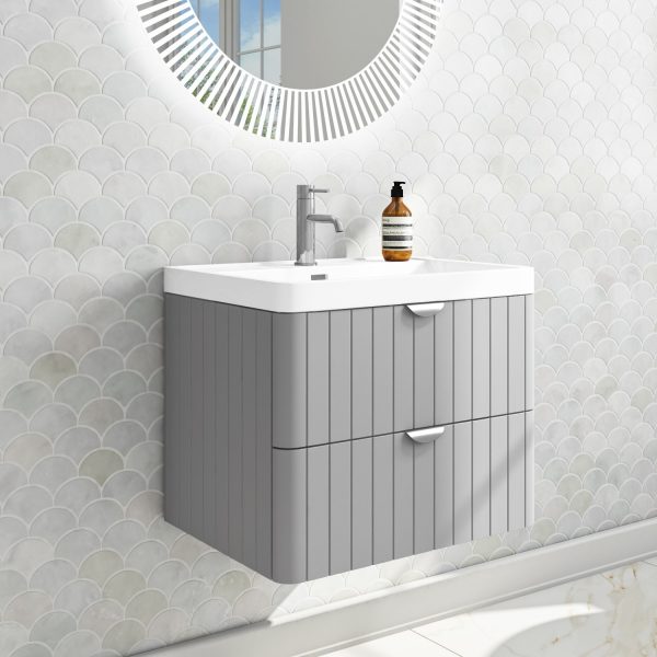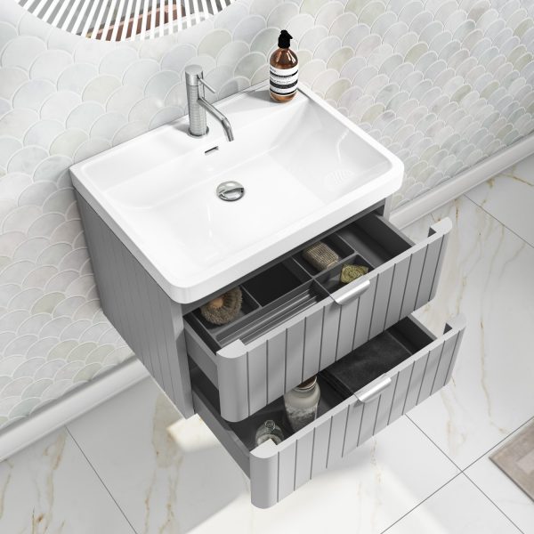 600mm Grey Wall Hung Vanity Unit with Basin and Chrome Handles – Empire