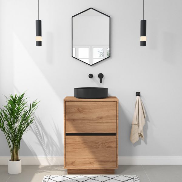 600mm Wood Effect Freestanding Countertop Vanity Unit with Basin – Roxbi
