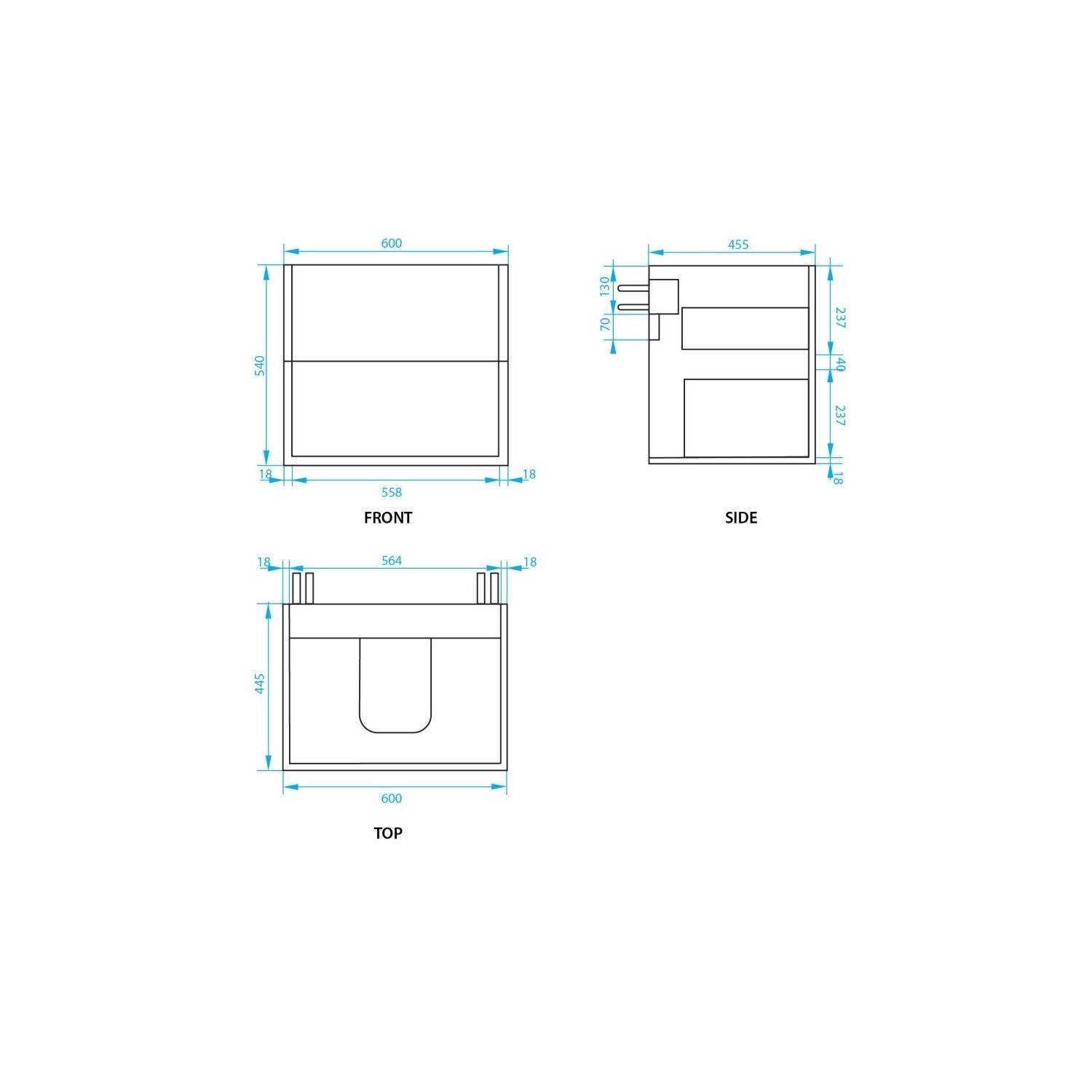 - Unit dimensions: H540 x W600 x D455 mm (give or take -/+ 3mm per measurement)
