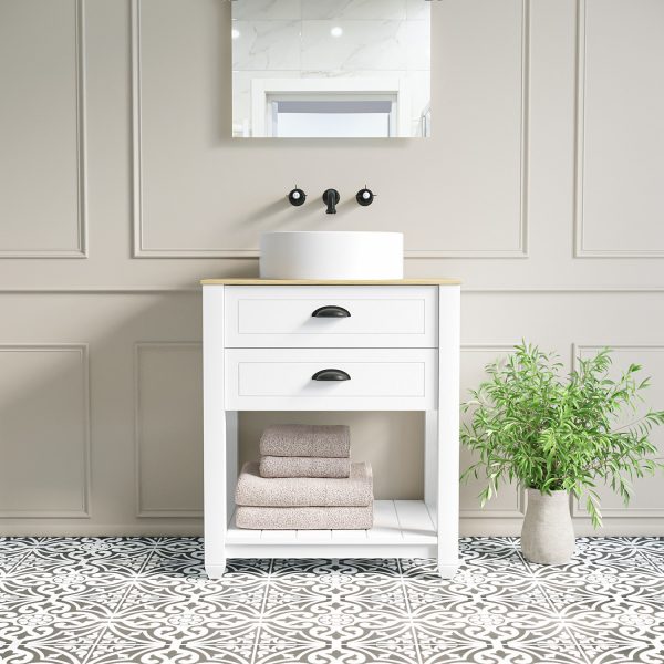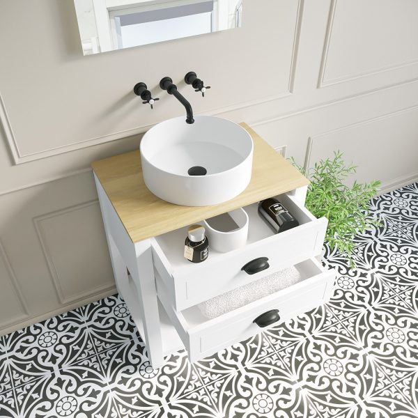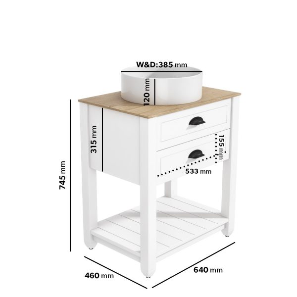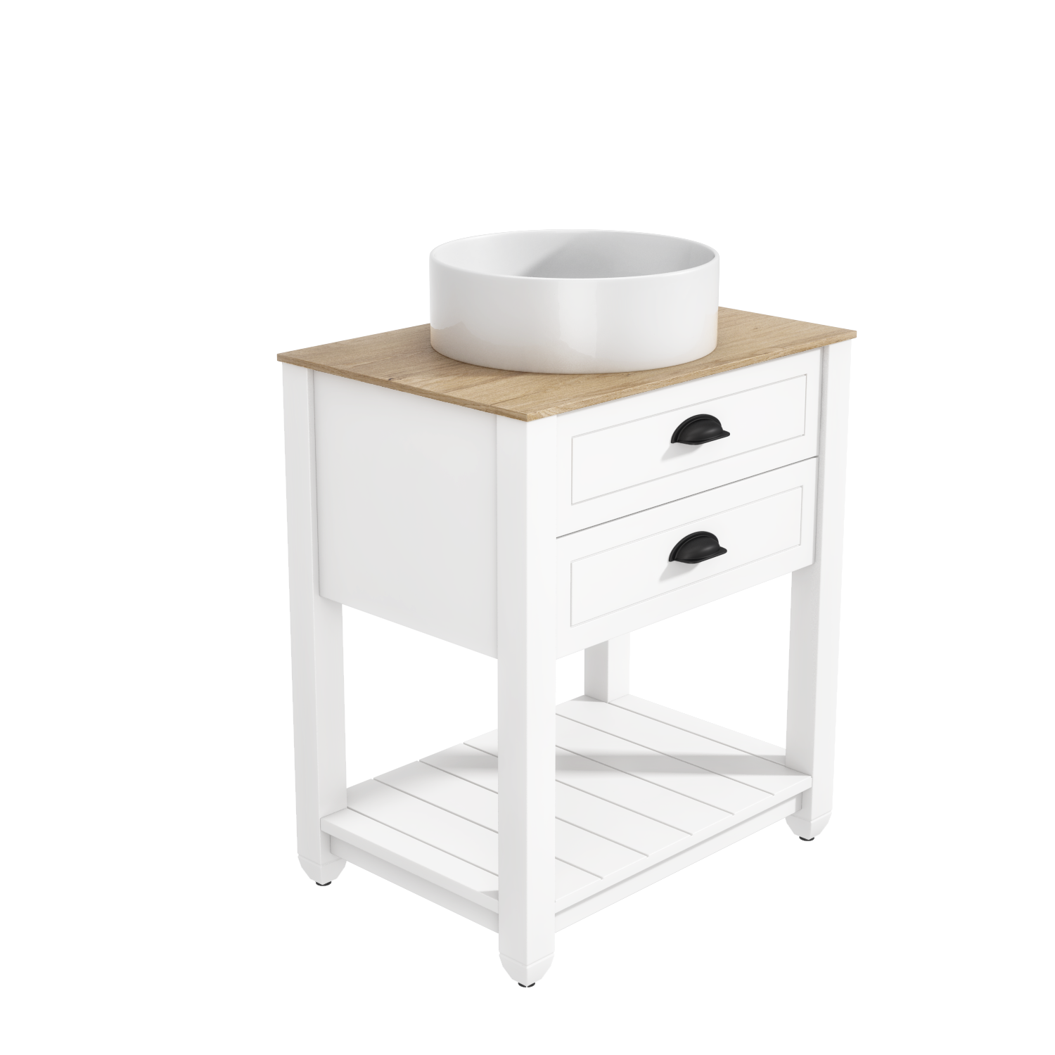 650mm White Freestanding Countertop Vanity with Wood Effect Worktop and Basin – Kentmere