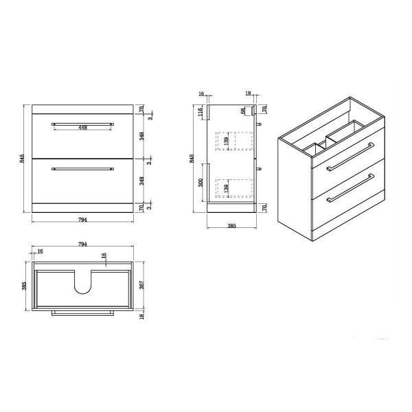 A high-quality matt ceramic inset basin is included, which has one central tap hole; a tap isn’t included, so you’re free to choose one of your choice. This vanity unit requires no assembly, secure the basin then install your chosen tap and get to using it right away.