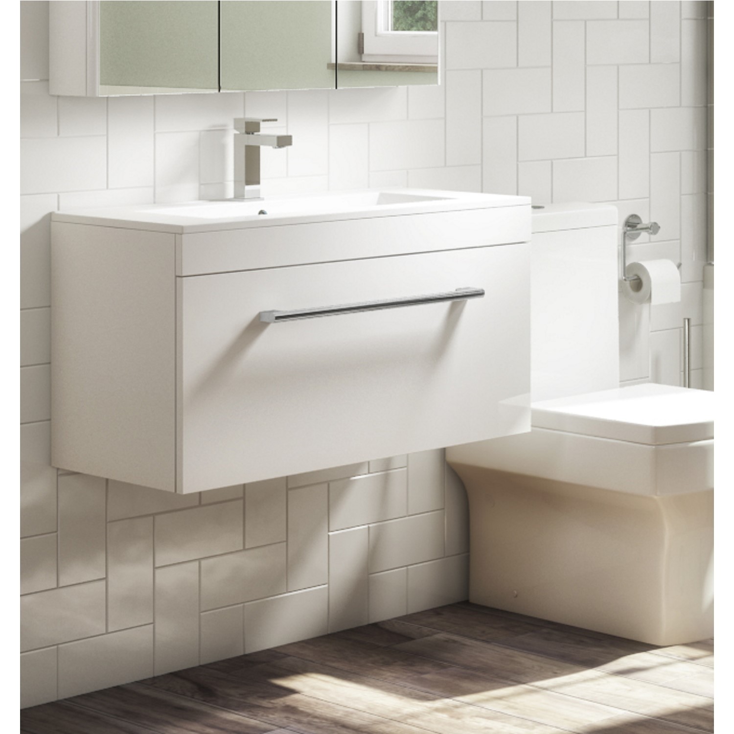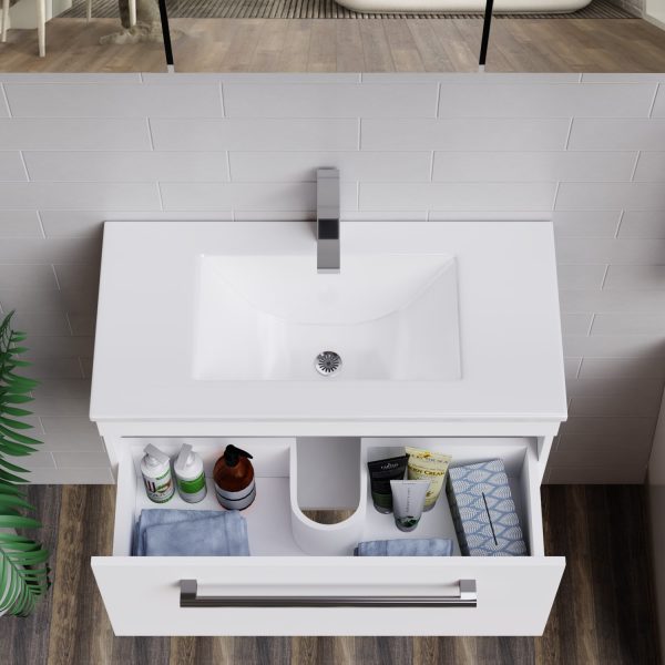800mm White Wall Hung Vanity Unit with Basin and Chrome Handles – Ashford