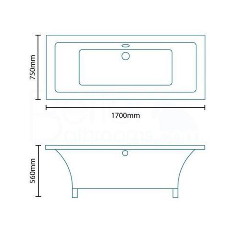 Athena Freestanding Double Ended Bath White with Chrome Feet – 1700 X 750mm