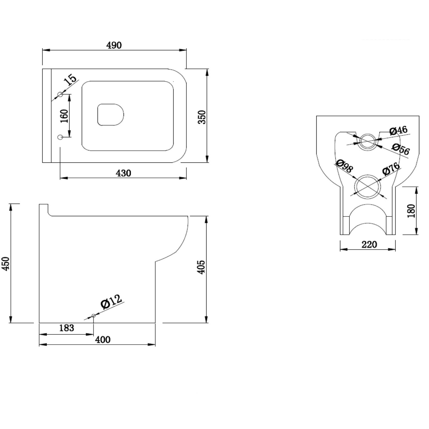 - Overall dimensions: H450 x W350 x D490 mm