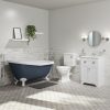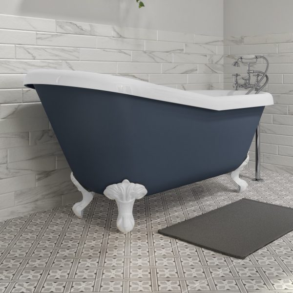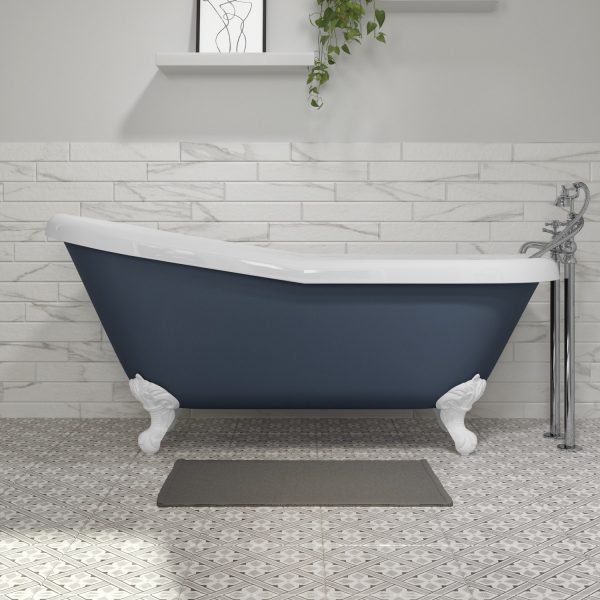 Blue Freestanding Single Ended Roll Top Slipper Bath with White Feet 1615 x 690mm – Baxenden