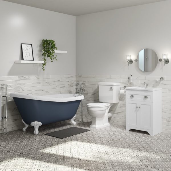 Update your bathroom with this rounded bath which comes complete with Victorian-style Matt White feet. The matt blue finish gives it a traditional meets modern styling that’ll look great in any style of bathroom. Taps are not included, which gives you the freedom to style as you wish. Made from high quality, sanitary grade acrylic, average 10mm thickness so you can rest assured this modern tub will last the test of time. Why not match to a wide range of other Baxenden products to complete the perfect look.