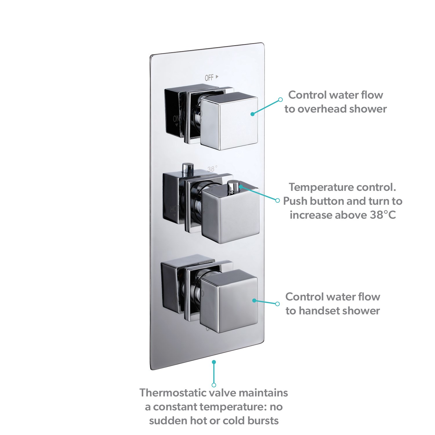 Chrome Dual Outlet Thermostatic Mixer Shower with Square Wall Mounted Shower Head and Handset – Cube