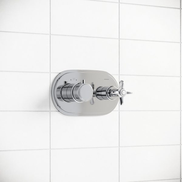 Chrome Single Outlet Thermostatic Mixer Shower with Round Wall Mounted Shower Head – Camden