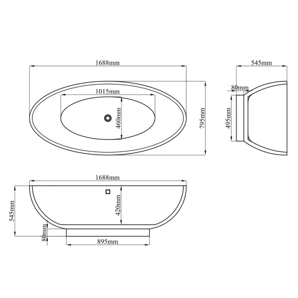 Freestanding Double Ended Bath 1688 x 795mm – Oval