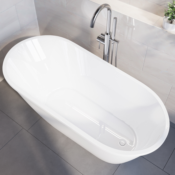 Make a statement in your bathroom with our Duna Freestanding Sipper Bath. The single-ended style offers a comfortable soak allowing you to relax your head against the slope of the slipper. Comes complete with a built-in waste and overflow, the slim laser-cut overflow and coordinating white waste gives you the flexibility to use any colour brassware. Not sure whether to go roll-top or not? This freestanding bath has a slight ledge around the bath for that contemporary feel.