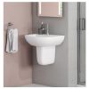 This stylish Newport bathroom sink is the perfect piece for any modern bathroom. It features a deep scoop basin with matching curved semi-pedestal, giving you extra floor space. The basin has one tap hole; the tap isn’t included, so you’re free to choose the mixer tap of your choice. Pair with the matching Newport range of products to complete the perfect look.