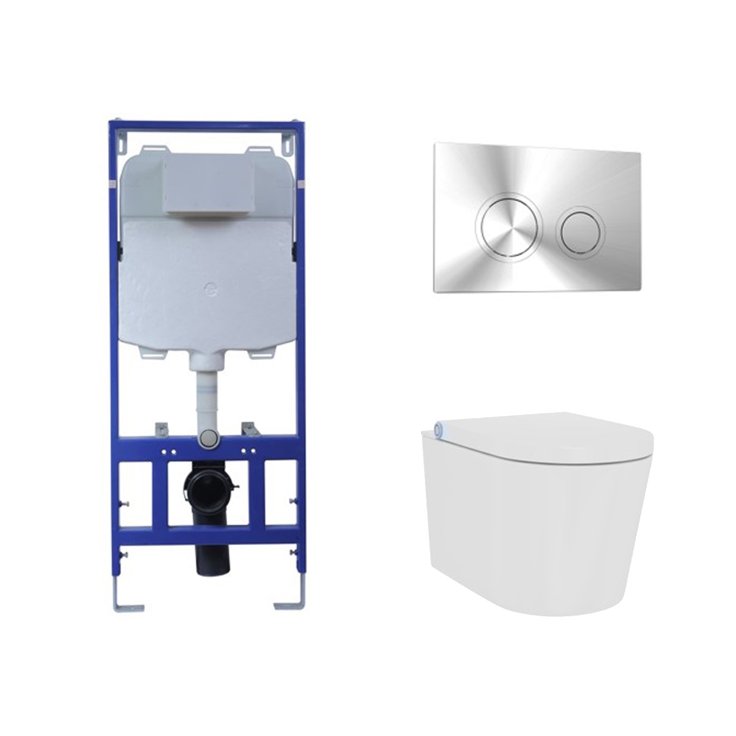 Wall Hung Smart Bidet Toilet Round with Cistern Frame and Chrome Flush Plate – Purificare