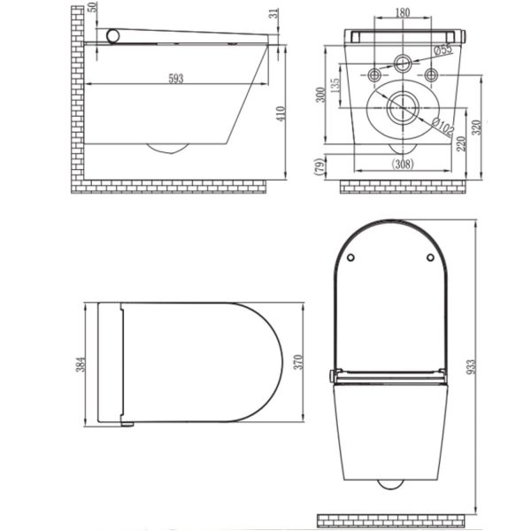 - Includes: toilet, toilet seat, built-in dryer & spray and wireless remote control