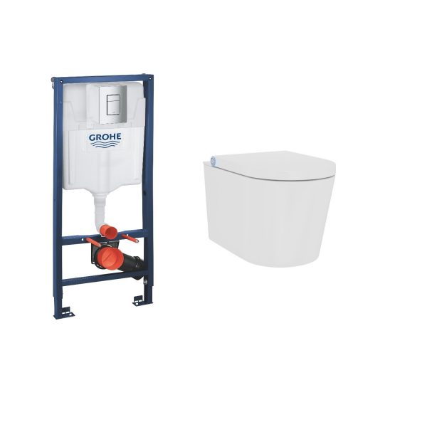 Wall Hung Smart Bidet Toilet Round with Grohe Cistern and Frame – Purificare