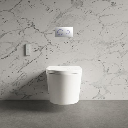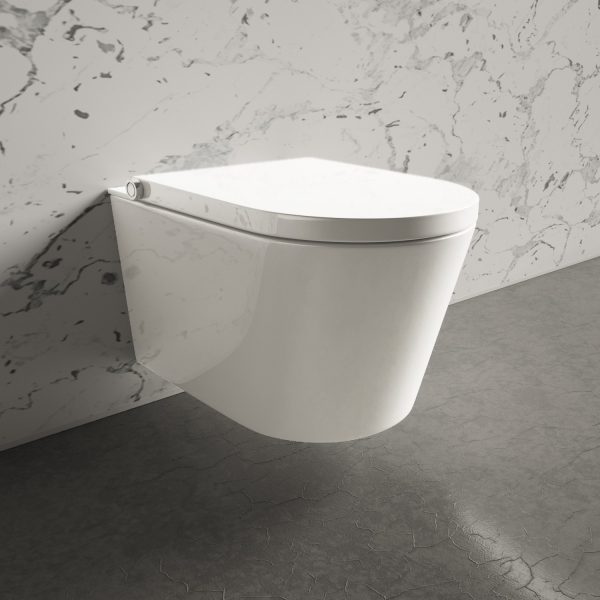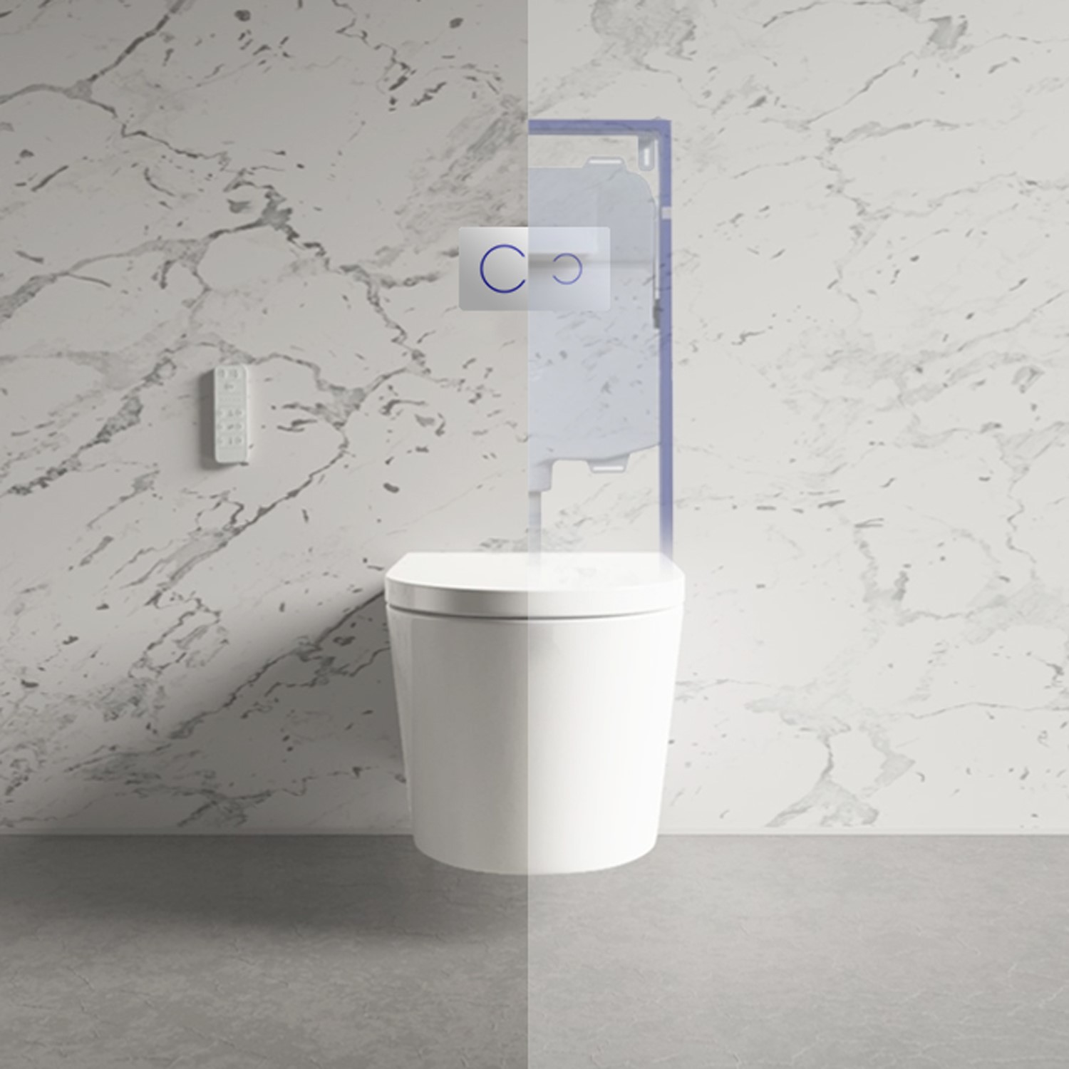 Wall Hung Smart Bidet Toilet Round with White Sensor Flush Plate Frame and Cistern – Purificare